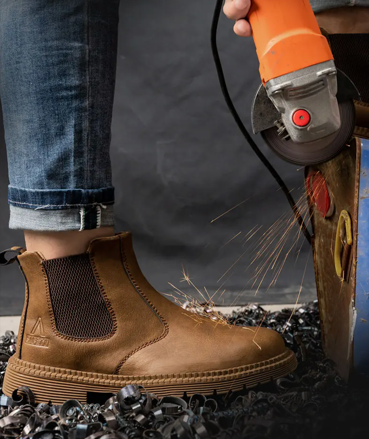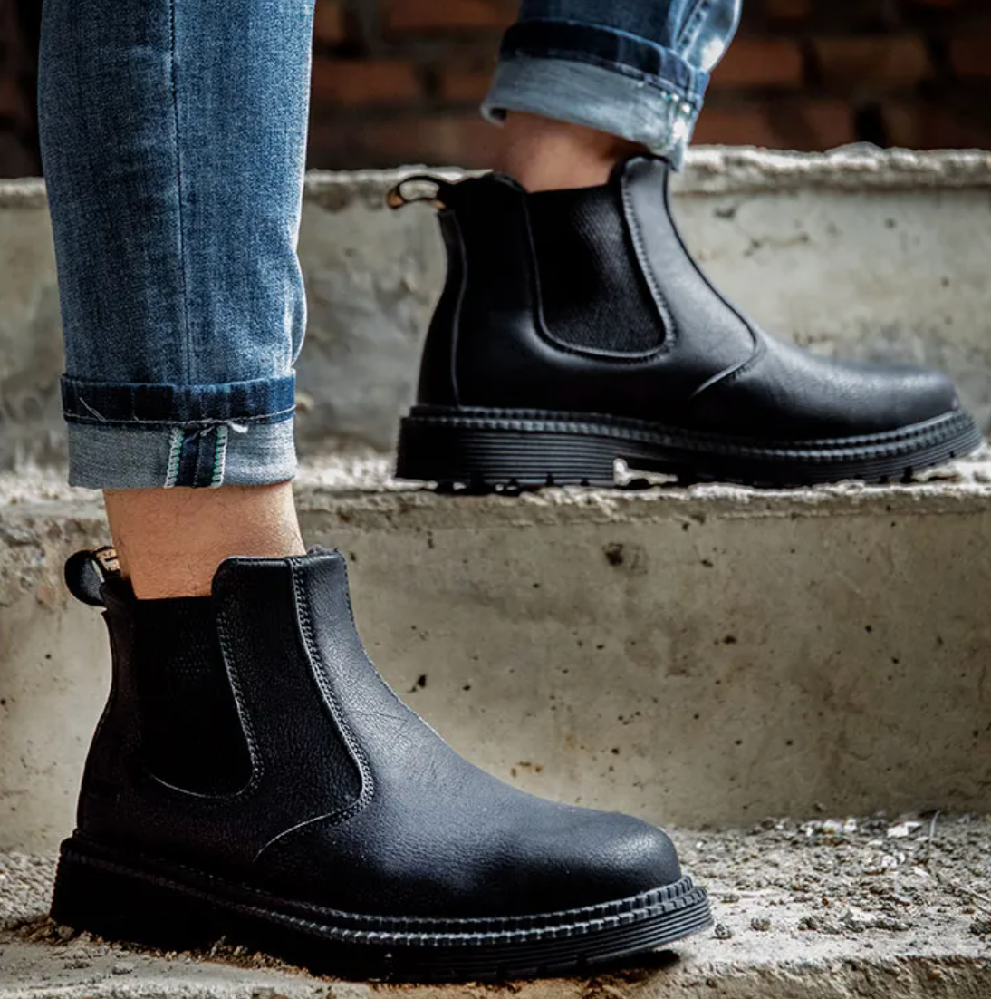 Een robuust meesterwerk dat is ontworpen voor de moderne man. Anti-slip, waterdicht, stalen neus, flexibel & comfortabel.