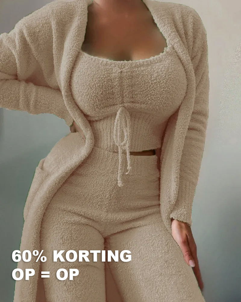 Op zoek naar een sportieve, stijlvolle en comfortabele outfit voor casual gelegenheden, maar ook voor thuis? Met onze 3-delige fleece set geniet je van een elegante uitstraling zonder in te leveren op comfort.